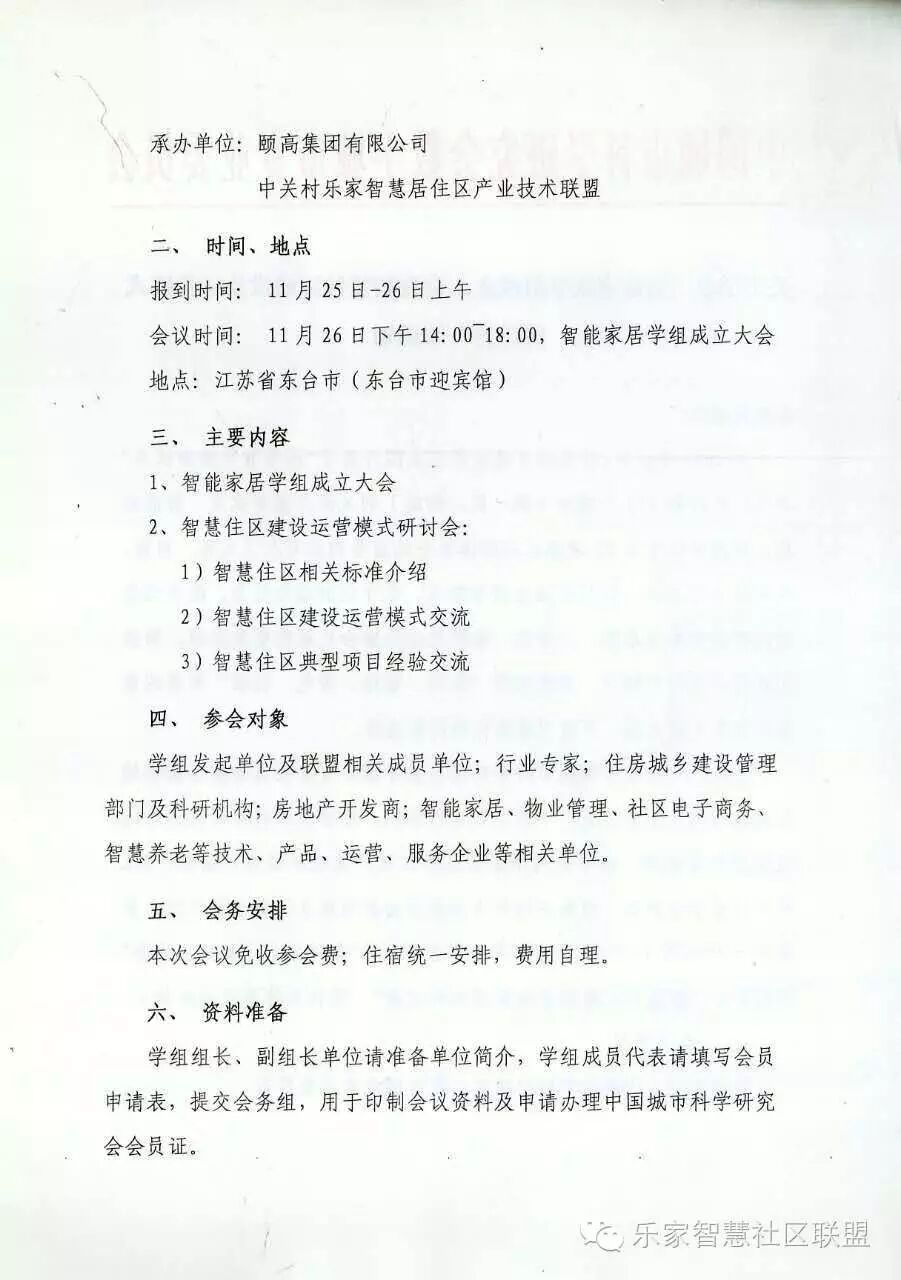 为进一步加强中国城市科学研究会数值城市专业委员会在全国各地智慧城市建设中的力量,不断完善运行机制,增强城市科学研究活动的吸引力和凝聚力,由中关村乐家智慧居住区产业联盟、海尔、TCL等十几家单位发起,经数字城市专业委员会批准成立智能家居学组,并决定于2016年11月26日在江苏省东台市召开“智能家居学组成立大会”,同期举办“智慧住区建设及运营模式研讨会”。