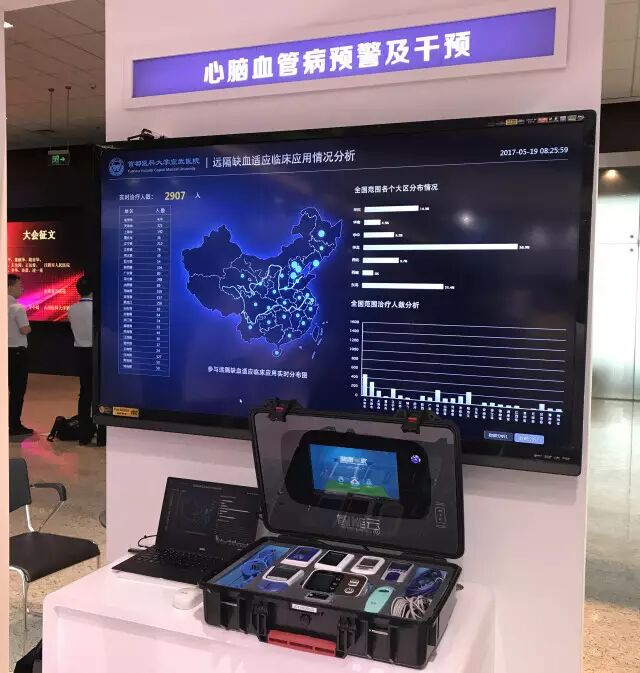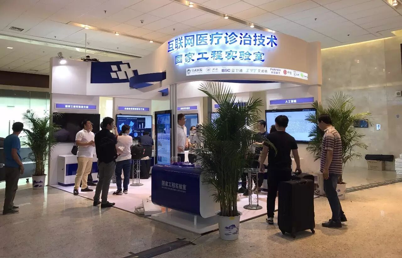 会上,普天技术作为联合共建单位之一,和宣武医院、中信数字、蓝卫通、艾威梯等合作单位共同以“互联网医疗诊治技术国家工程实验室”形象参加展会,展示了采用“互联网+”、大数据分析、人工智能、虚拟现实等技术建设的基于互联网的心脑血管病医疗救治平台。