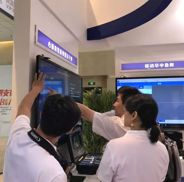 大会期间,王陇德院士在“互联网医疗诊治技术国家工程实验室”主任、宣武医院副院长吉训明的陪同下,参观了普天技术展示的针对高危人群智能预警及干预、心脑血管病远程急救、机器人辅助心脑血管病康复管理和教育等方面的创新成果,王院士对中国普天运用信息技术优势,积极参与卒中防治分级诊疗网络体系建设做出的贡献给予高度评价。